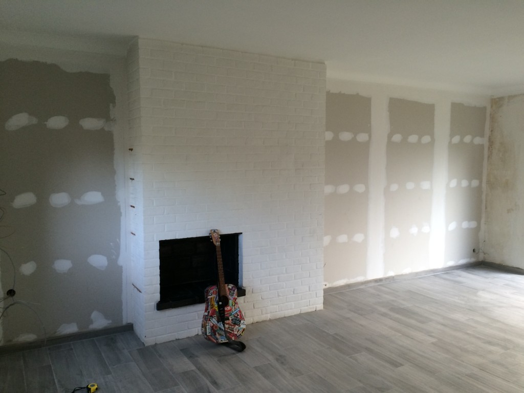 Je ne comptais initialement pas consacrer de gros budget aux murs intérieurs en me contentant de peindre par moi-même, histoire de rafraichir provisoirement l’ensemble. C’est en détapissant et découvrant pas mal de boulot de plafonnage que j’ai opté pour la solution professionnelle. Il n’y a pas à dire, avec les bonnes machines, outils et l’expérience, ça va beaucoup plus vite que mes brèves tentatives 😀