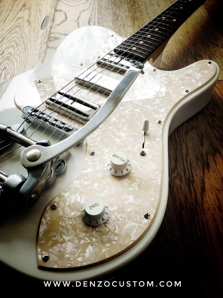 Pour rappel, cette TeleStrat est ma FrankenStrat perso : un mix de Telecaster et de Stratocaster dans lequel j’ai expérimenté un grand nombre de combinaisons micros, piezo, câblages différents et autres gadgets intégrés.