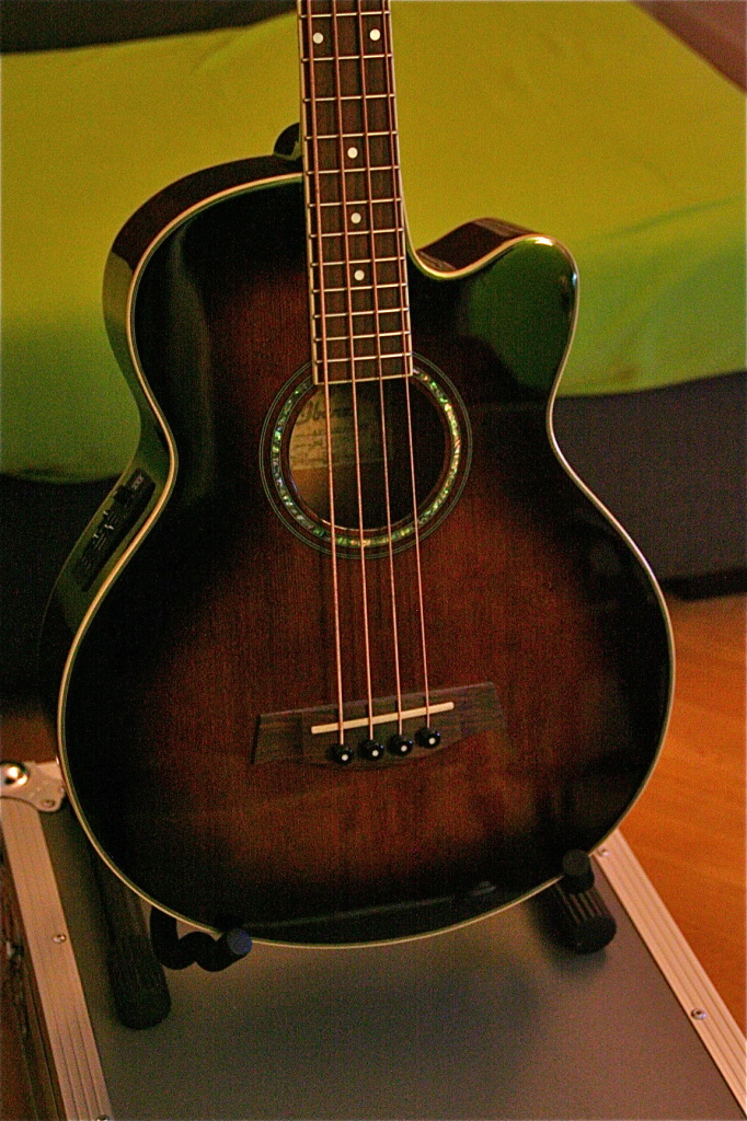 A la recherche de sonorité acoustique pour compléter mon matériel basse, j’ai acquis cette petite électro-acoutique Ibanez AEB 10 en septembre 2006. Après avoir été essayer différents modèles en stock dans les magasins du coin, mon choix s’est donc arrêté sur ce rapport qualité prix intéressant dans le budget que j’allouais à un instrument secondaire de ce type.